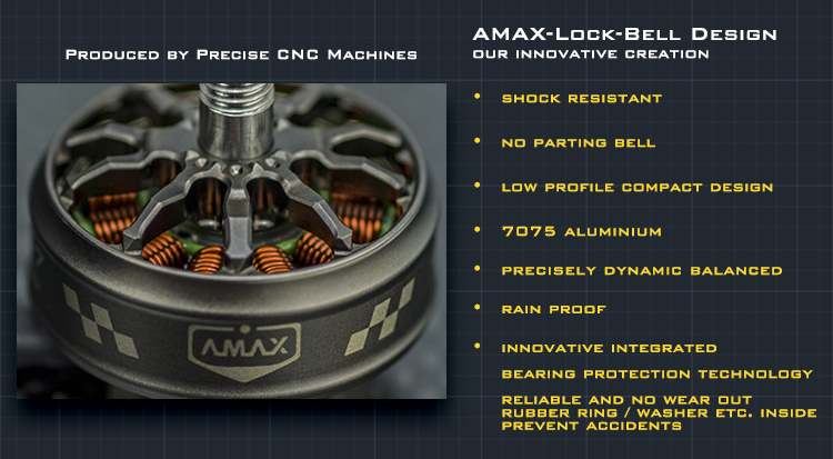 Upgrade your racing drone with the AMAXinno Competition 2306 1950Kv Motor. Built for speed and agility, this motor delivers powerful performance and precision control. Take your racing to new heights and leave the competition in the dust. The Bando version takes the same design and performance but with a tougher bell construction intended for those who fly and crash over hard surfaces.