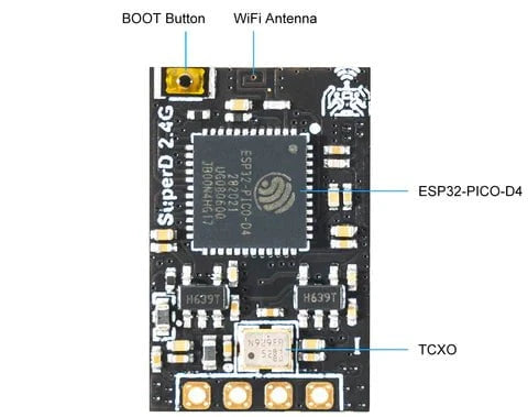 - MCU: ESP32 PICO D4, dual SX1280 (SX1281)