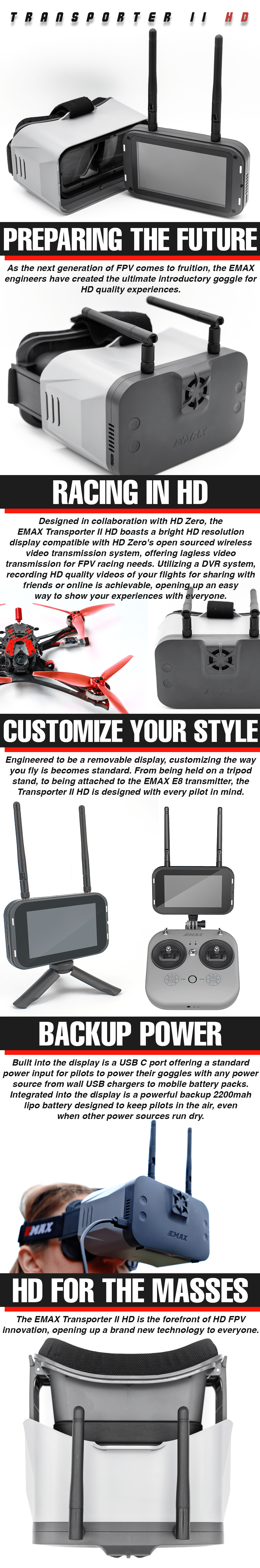 The EMAX Transporter II HD is the forefront of HD FPV innovation and growth, opening up a brand new technology to everyone.