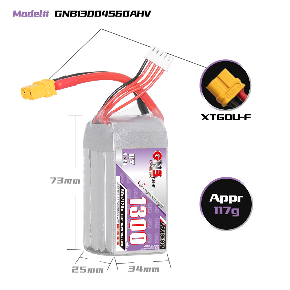 - 1x Gaoneng GNB 15.2V 4S 1300mAh 60C LiHV Battery - XT60