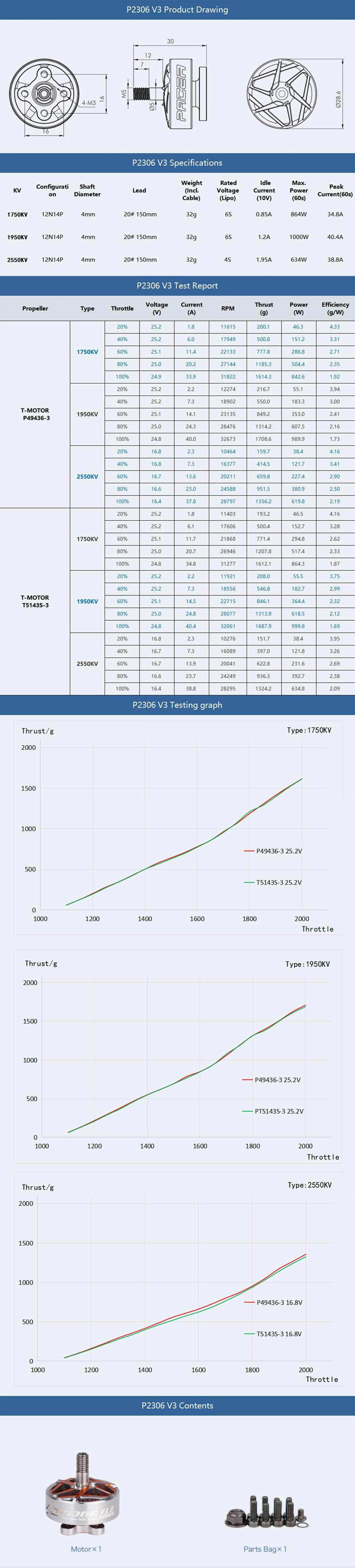 - 1x T-Motor Pacer V3-2 2306 1750Kv Motor