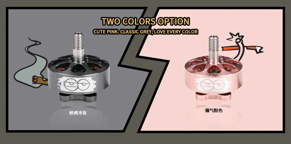 Introducing the new Slatt 2306.3 FPV Drone Motors. Made in collaboration with freestyle pilot SlattFPV these motors are not only adorable with their heart-style bell design but they're also meant to be durable and smooth. Available in two colors Cute Pink and Classic Gray, pick up yours today!